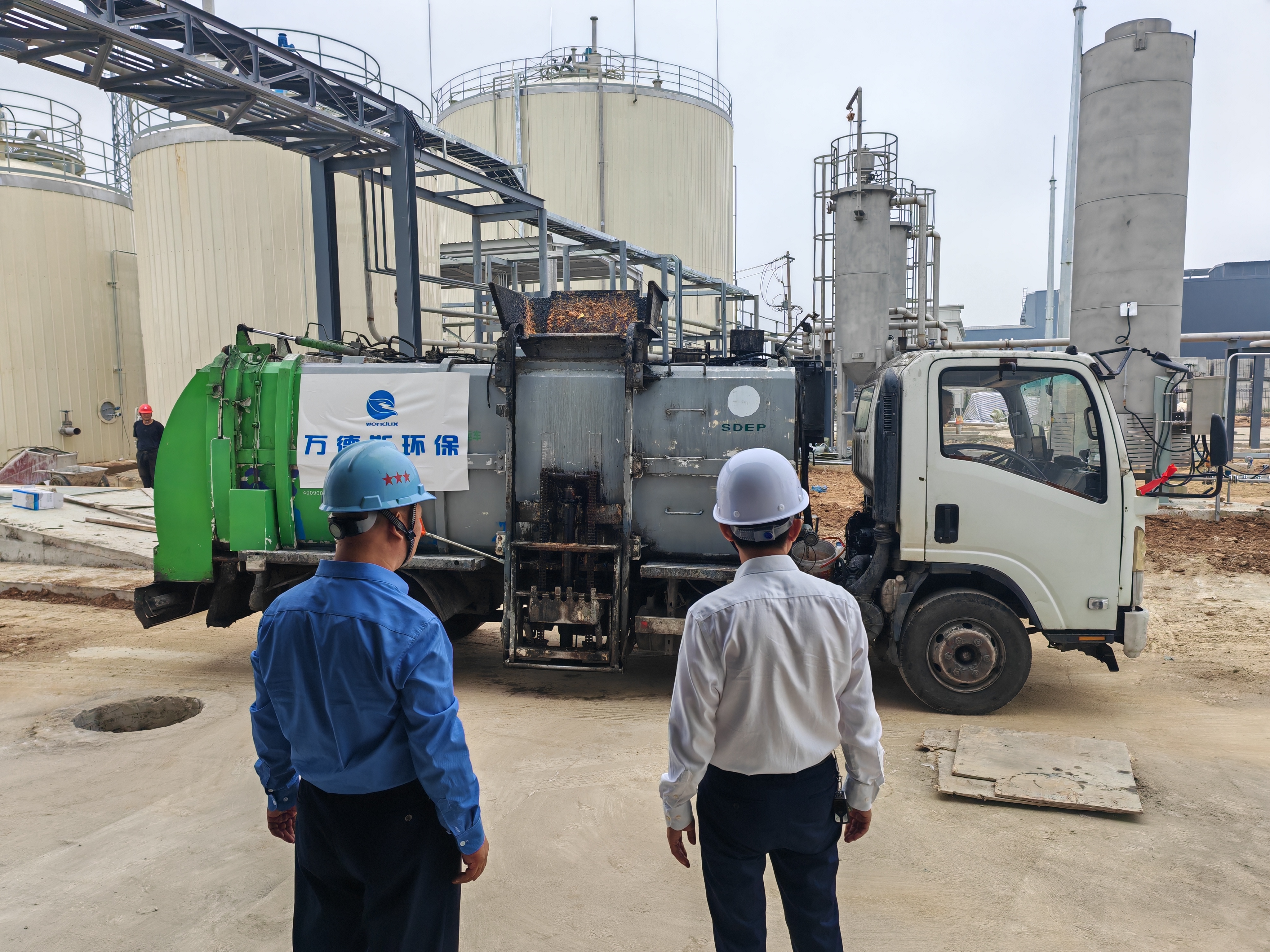 10月10日上午,東海縣餐廚廢棄物處理項目現場傳來關鍵進展——首輛滿載餐廚垃圾的收運車在預處理車間順利完成卸料,標志著由東海縣萬德斯環保科技股份有限責任公司負責實施的該項目,正式進入進料調試試運行階段,我縣餐廚垃圾處置自此實現“合理化、規范化、積極化、無害化、資源化”的重要突破。