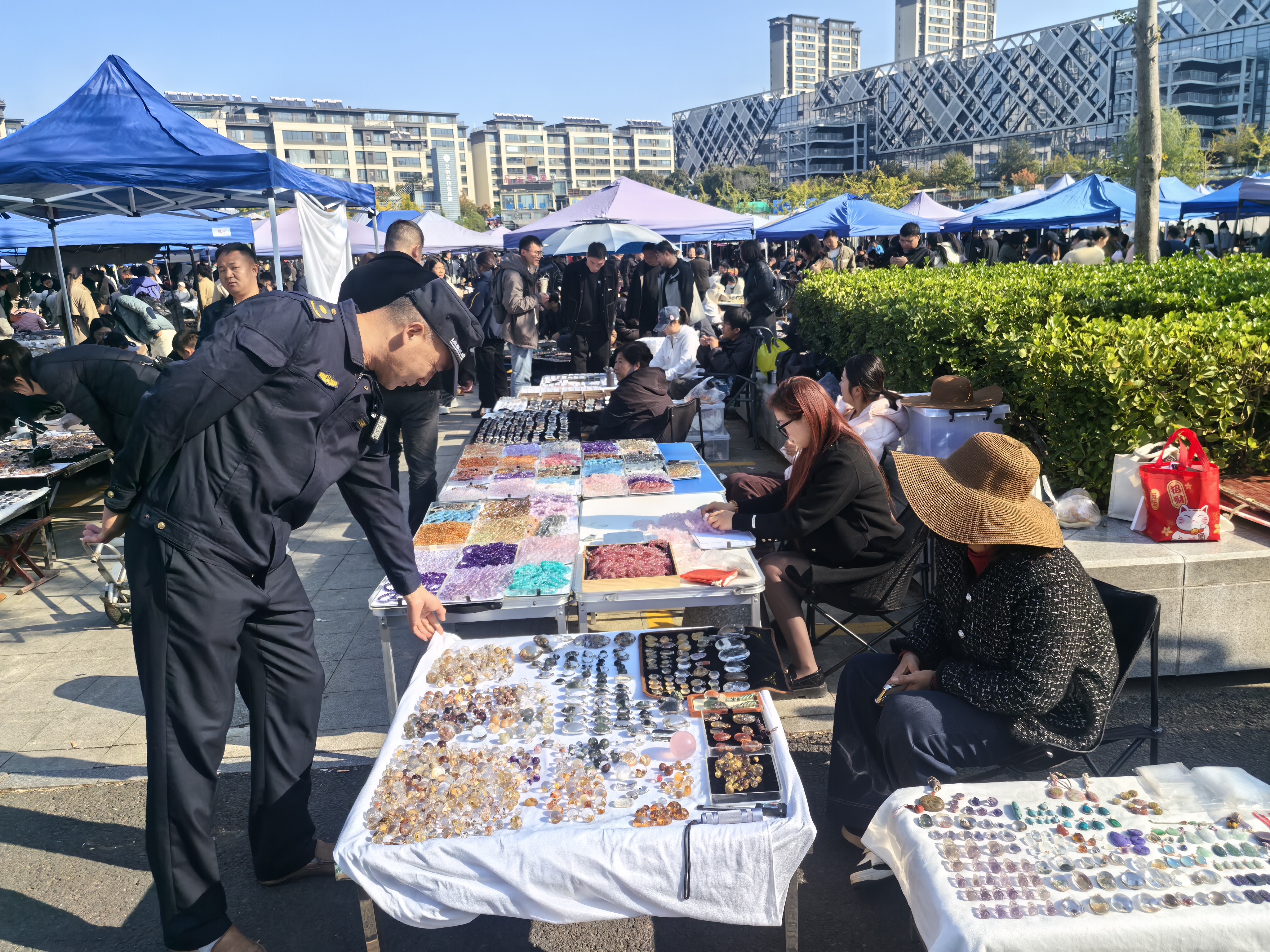 每逢水晶城逢大集的日子,早上7時(shí)許,城管中隊(duì)管理人員就已經(jīng)到位,疏導(dǎo)道路交通,保障車(chē)輛通行,對(duì)亂停亂放的非機(jī)動(dòng)車(chē)輛進(jìn)行移位管理。同時(shí)對(duì)水晶制品攤位正常巡查,及時(shí)處理商戶的各種訴求,為商戶提供便捷服務(wù)。到崗前,隊(duì)員們便整理好著裝,帶著熱線轉(zhuǎn)辦的工單,開(kāi)啟一天的轄區(qū)巡查工作?!耙粋€(gè)上午至少五至六趟循環(huán)巡查,如果有需要臨時(shí)處理的情況,我們都會(huì)隨時(shí)與中隊(duì)保持聯(lián)絡(luò)。”城管中隊(duì)隊(duì)員李軍說(shuō)。